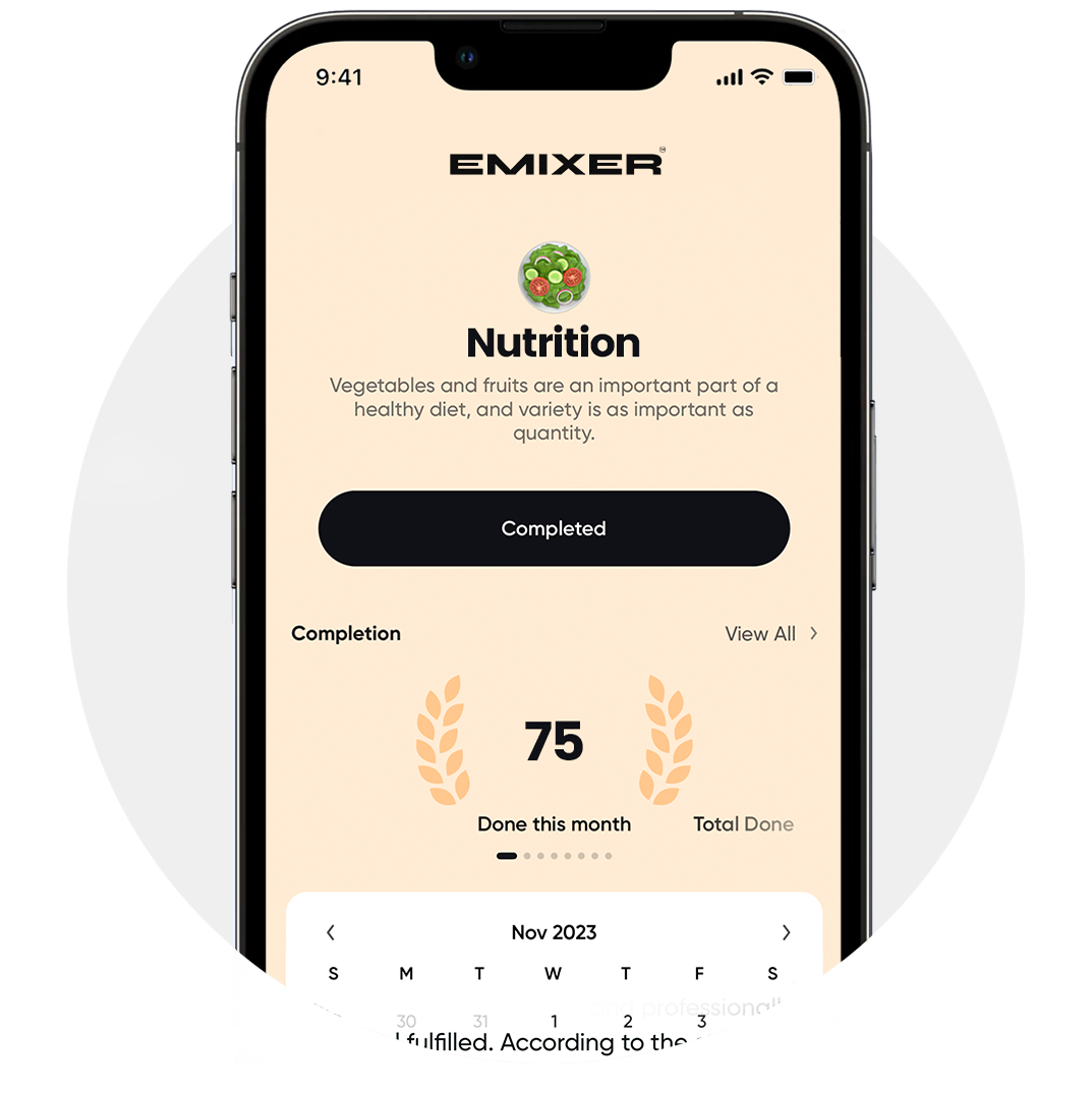 Pair your Emixer Blender with our App through AI, and pick up a goal of what nutrients you want to consume every day, and receive regular notifications.